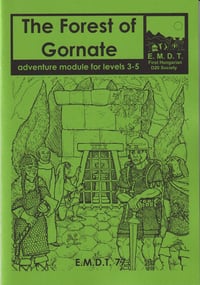 A 32-page module for 3rd to 5th level characters, The Forest of Gornate offers a complex, open-ended wilderness pointcrawl set in the Forest of Gornate, a place of fallen civilisations, strange denizens, and natural wonders. Seek the treasures of a mysterious villa, the secrets of a reclusive bandit leader, win the patronage of the ancient and sinister Guild of Judges, or strike out on your own to seek fame and fortune in the forests, and the lands beyond. Inspired by the gamebook classic, Scorpion Swamp, this is a module offering 42+39 keyed areas, adventure hooks, rumours, and random encounters offering numerous possibilities for open-ended exploration and player-driven adventure. It is also a companion to In the Shadow of the City-God, but enjoyable on its own terms.
